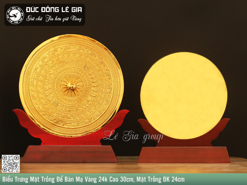 | Tên sản phẩm: | Biểu Trưng Mặt Trống Đế Gỗ Mạ Vàng 24k Cao 30cm, Mặt Trống ĐK 24cm |