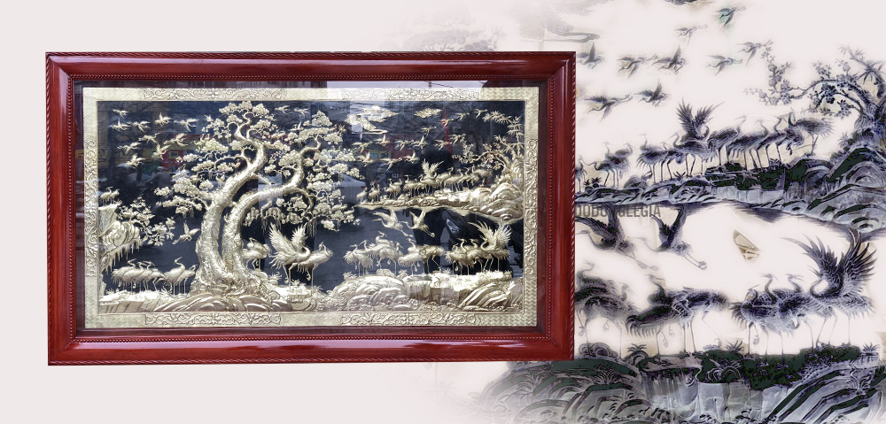 Tranh đồng Bách Hạc Quần Tùng hay còn gọi là Tranh Tùng Hạc Diên Niên bằng đồng mang ý nghĩa trường thọ và an lạc. Bức tranh vừa mang may mắn, khí tiết thanh cao.