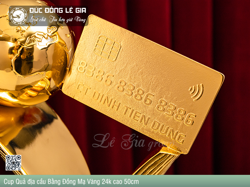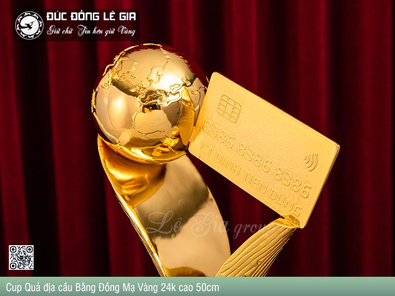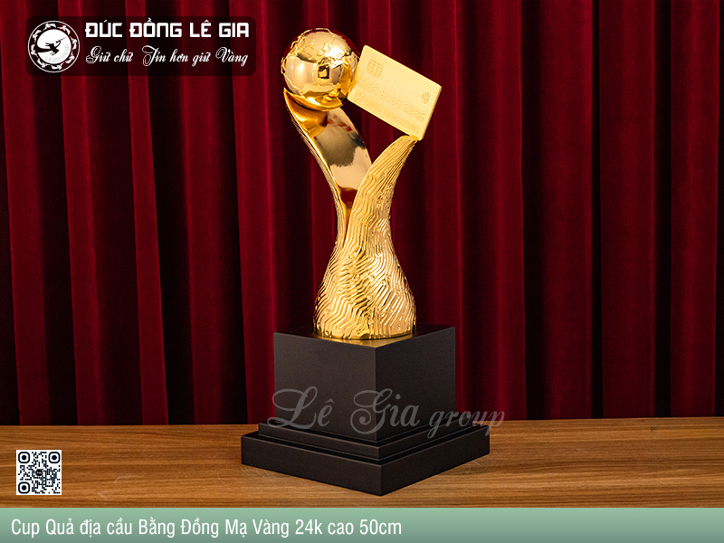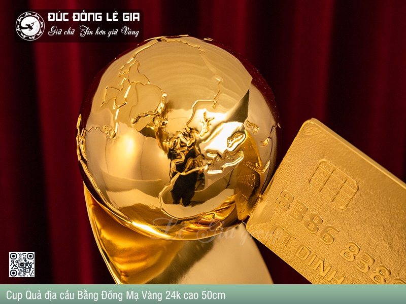 - Tên sản phẩm: Cup Quả địa cầu Bằng Đồng Mạ Vàng 24k