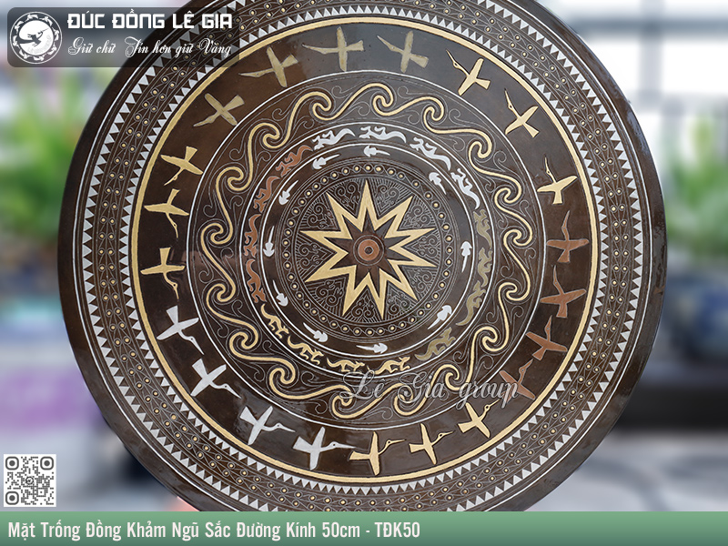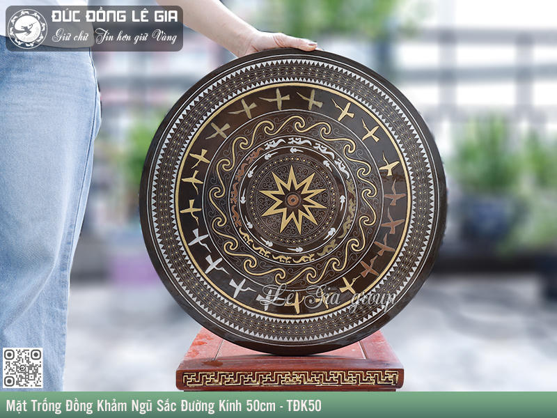 - Tên sản phẩm:Mặt Trống Đồng Khảm Ngũ Sắc Đường Kính 50cm - TĐK50