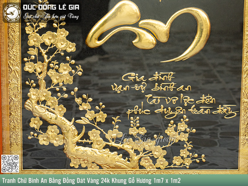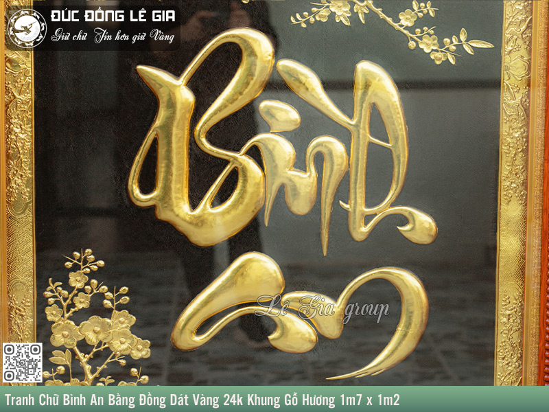 Hình Ảnh Chi Tiết Tranh Chữ Bình An Bằng Đồng Dát Vàng 24k