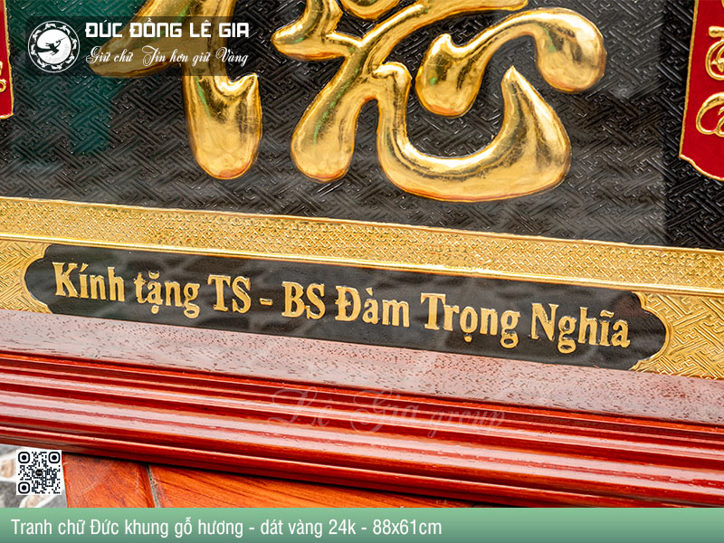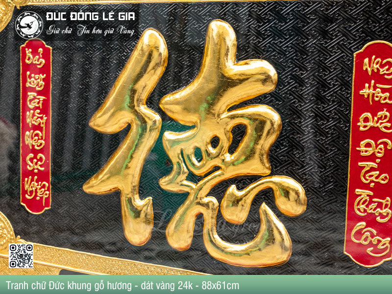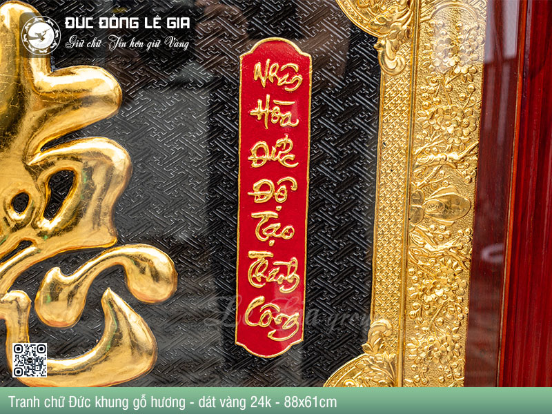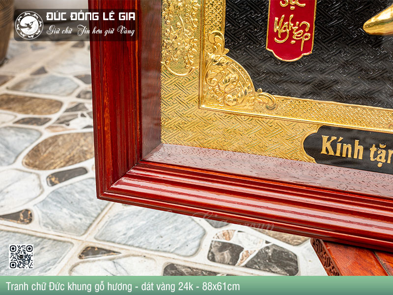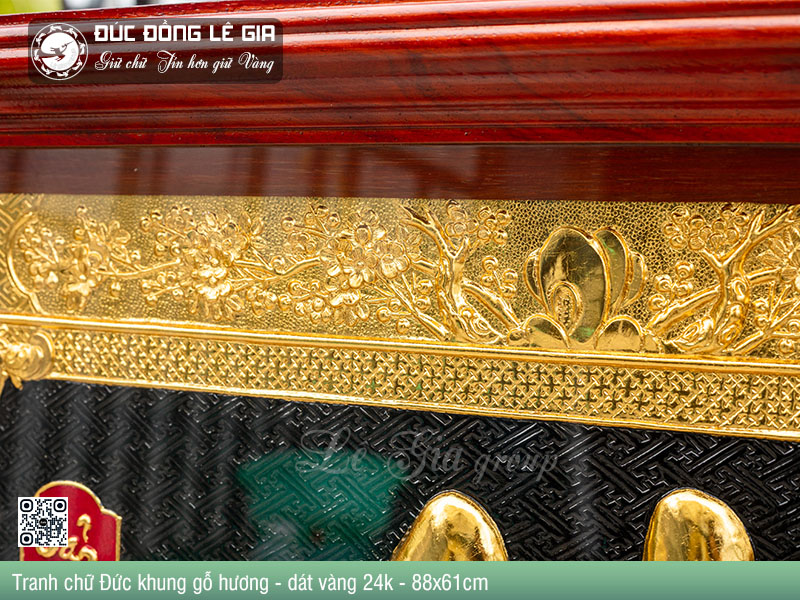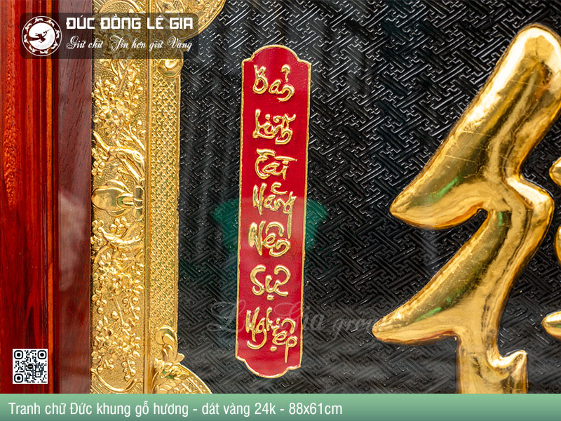 - Tên sản phẩm:Tranh chữ Đức khung gỗ hương - dát vàng 24k
