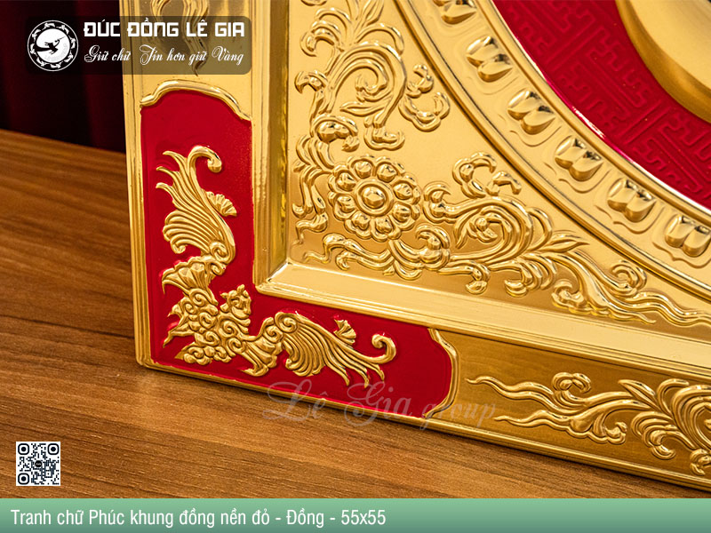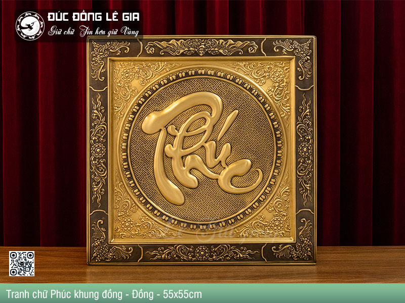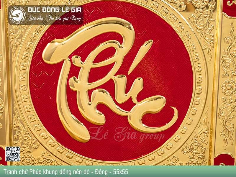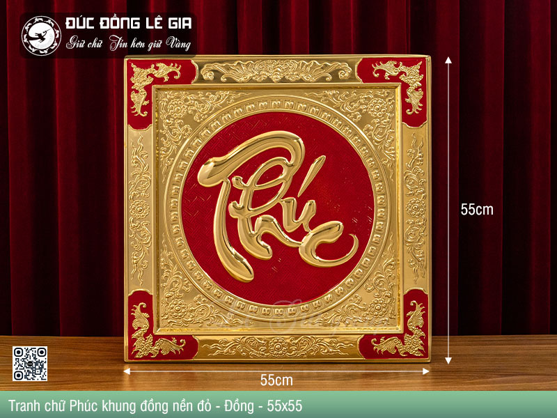 | Tên sản phẩm: | Tranh chữ Phúc khung đồng nền đỏ |