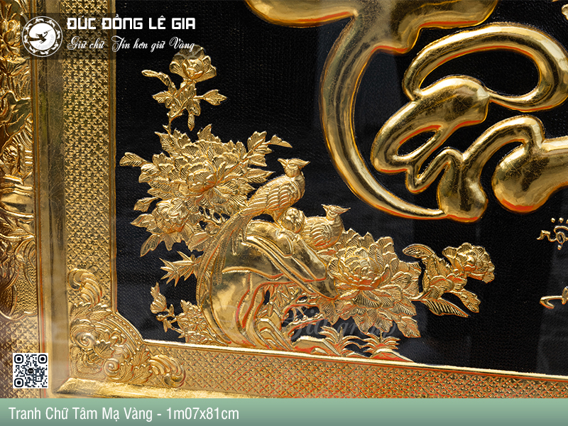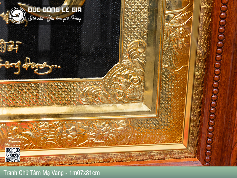 1. Đôi nét về Tranh chữ Tâm bằng đồng mạ vàng khung gỗ 1m07 x 81cm