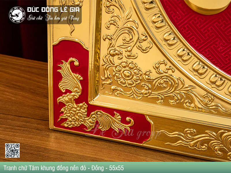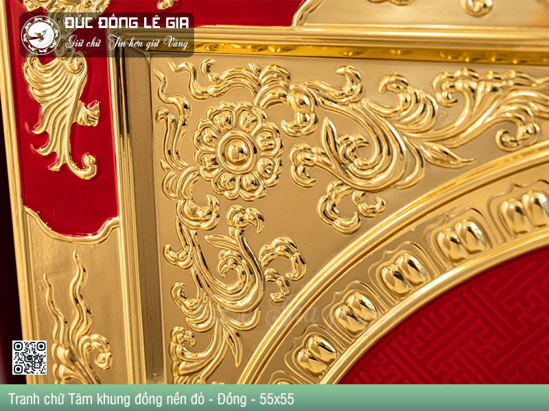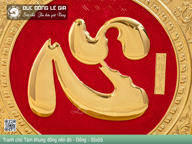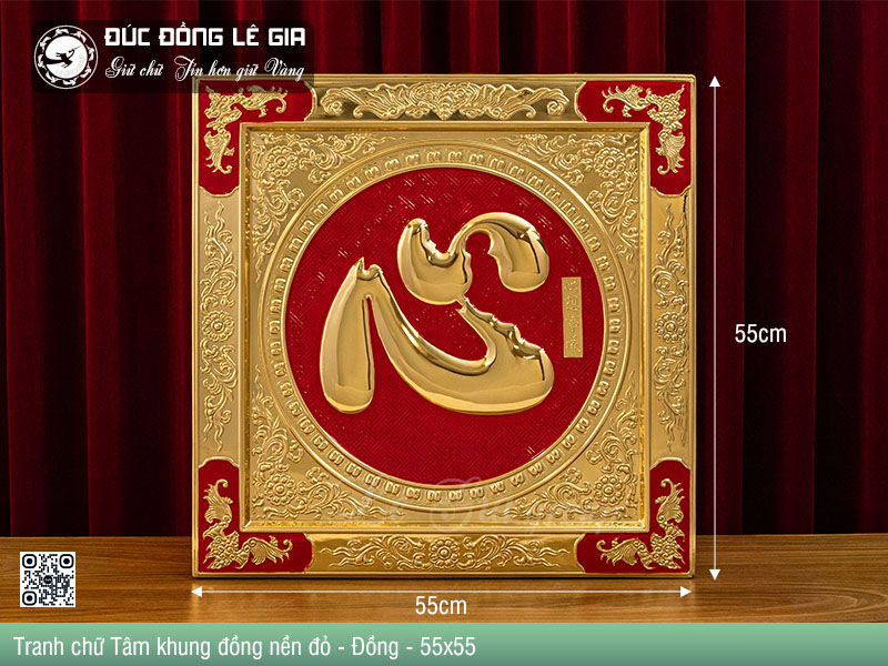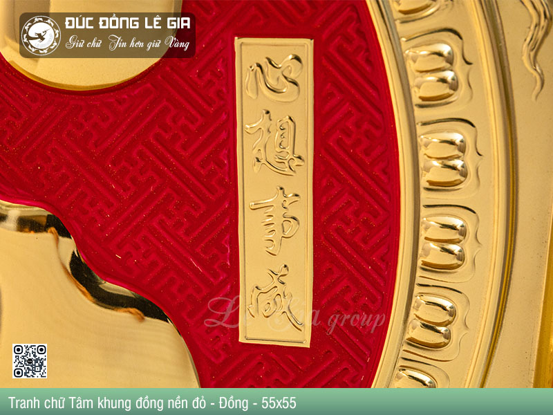 | Tên sản phẩm: | Tranh chữ Tâm hán khung đồng nền đỏ - Đồng |