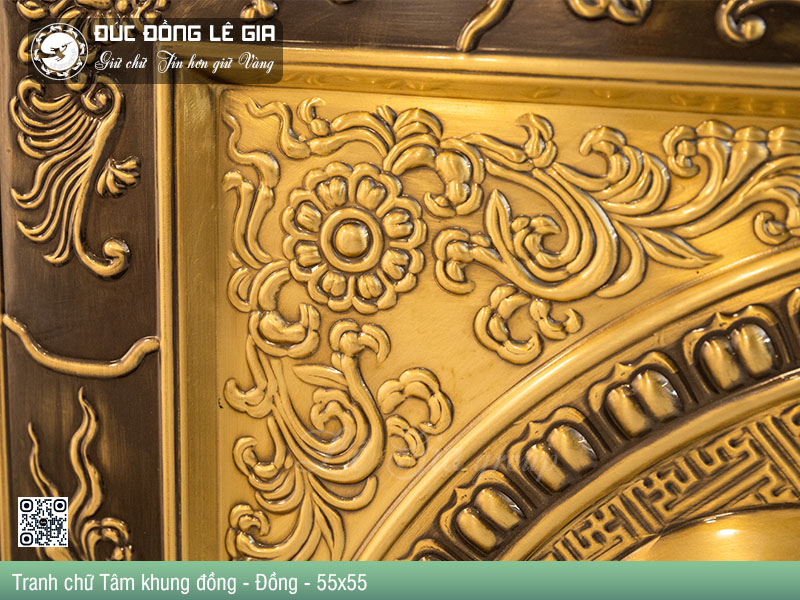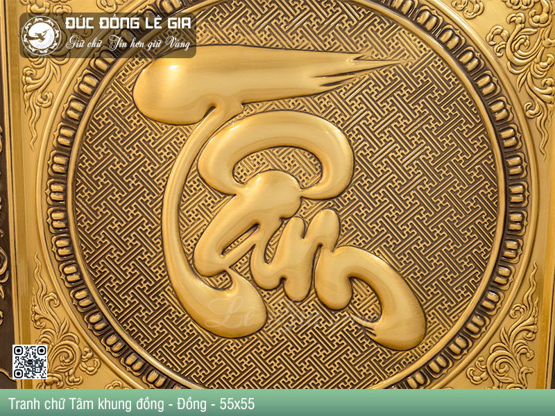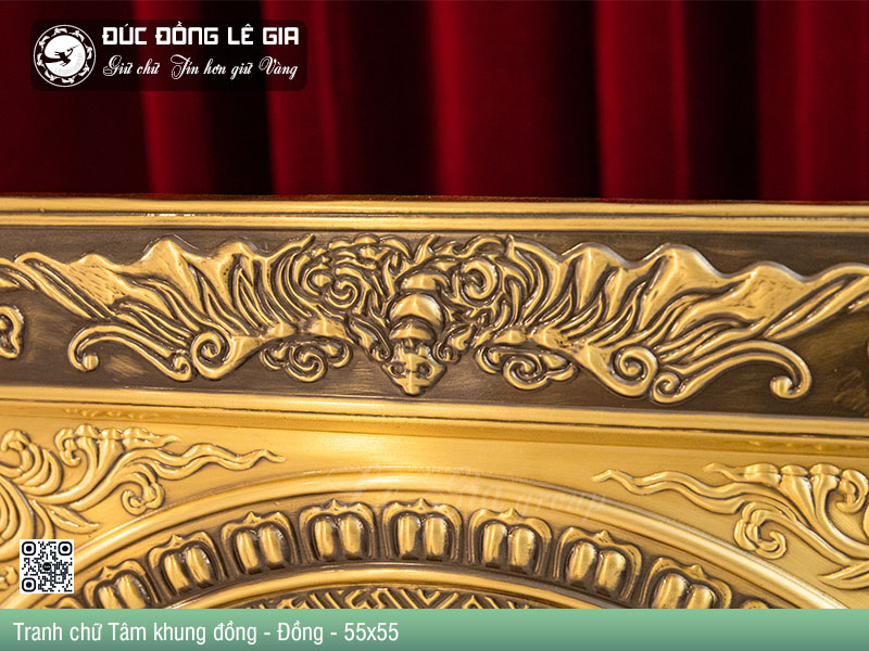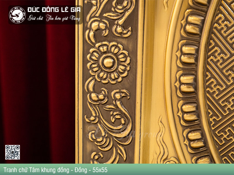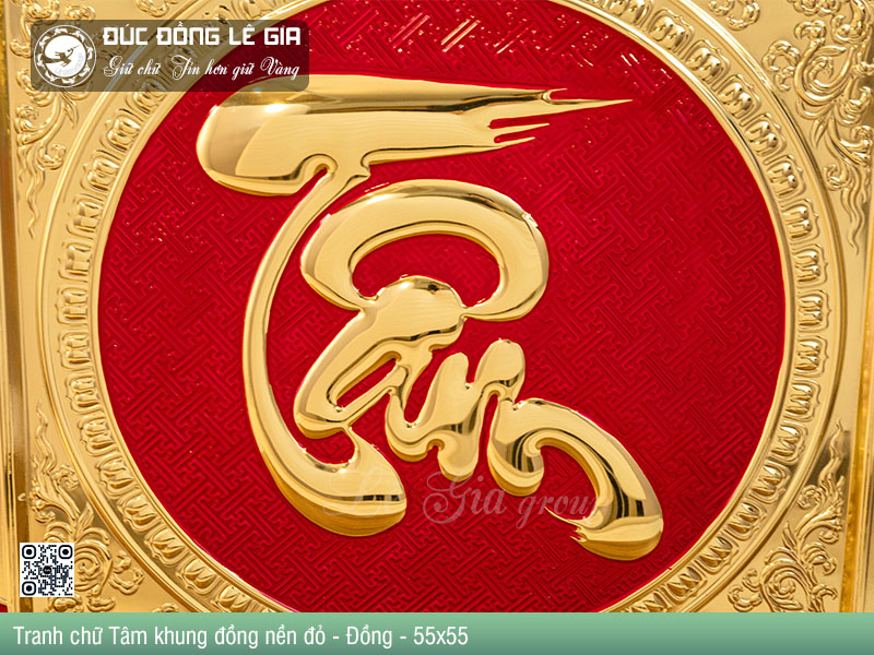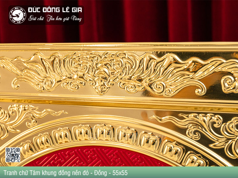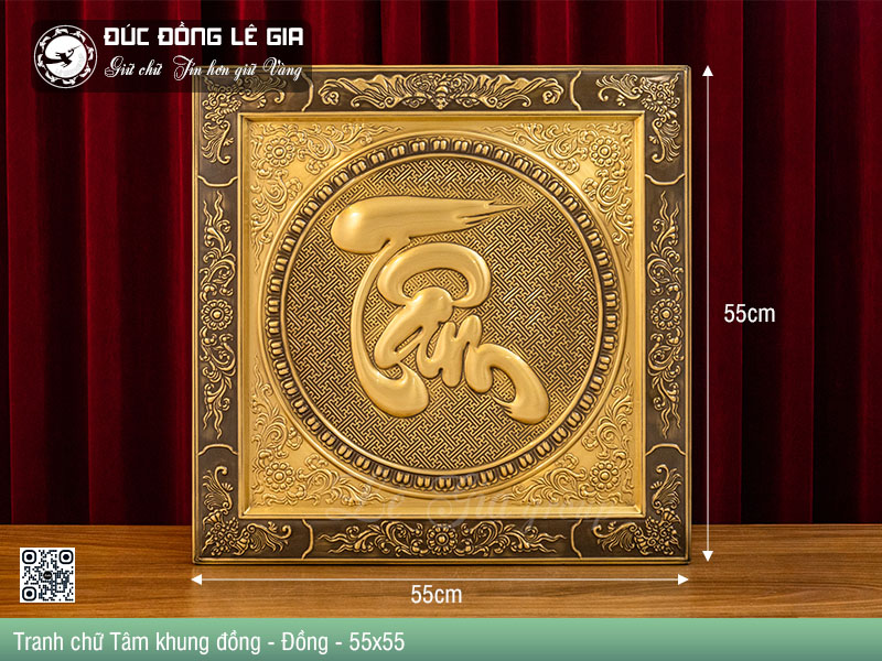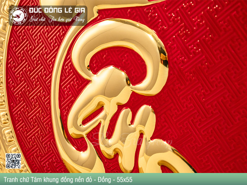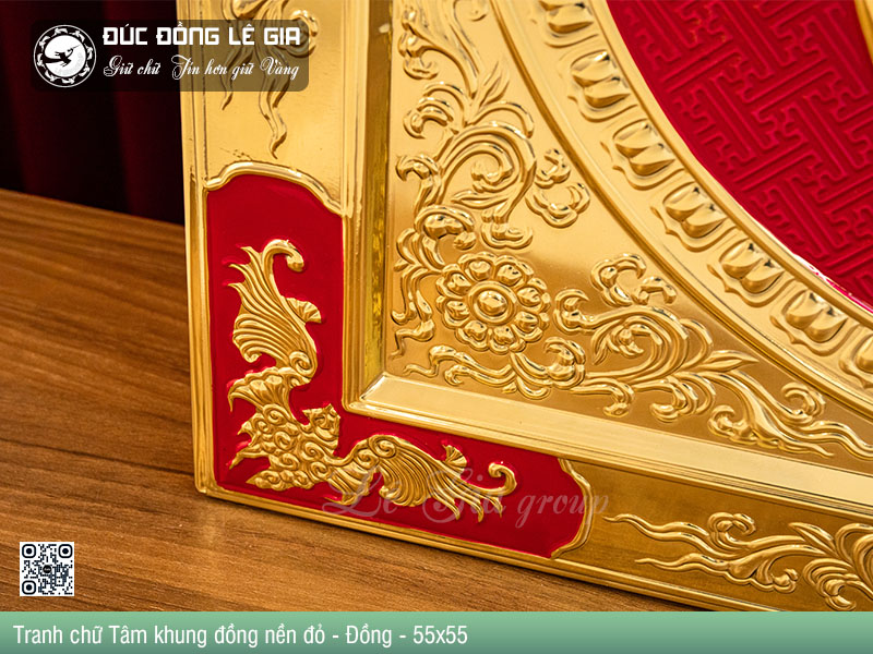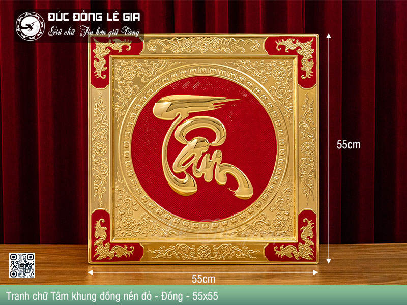 | Tên sản phẩm: | Tranh chữ Tâm thư pháp khung đồng nền đỏ - Đồng |