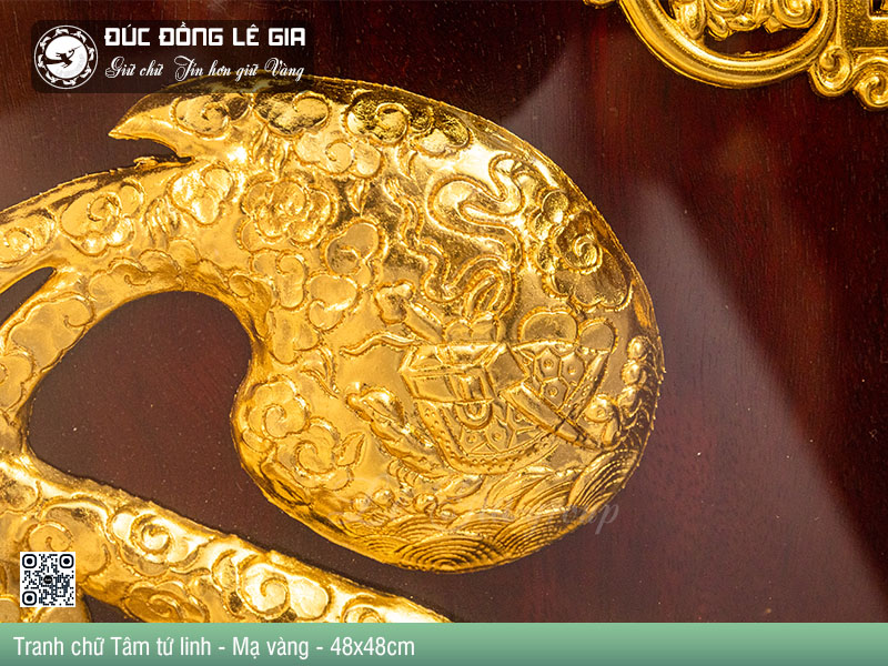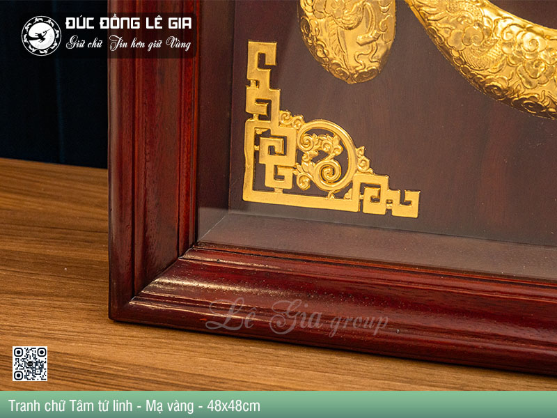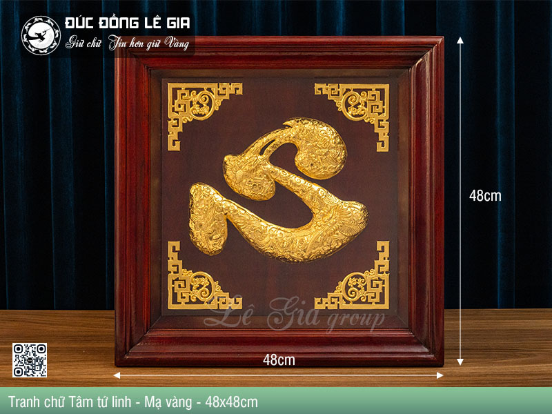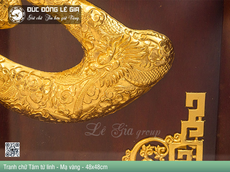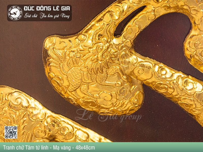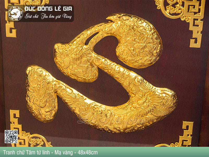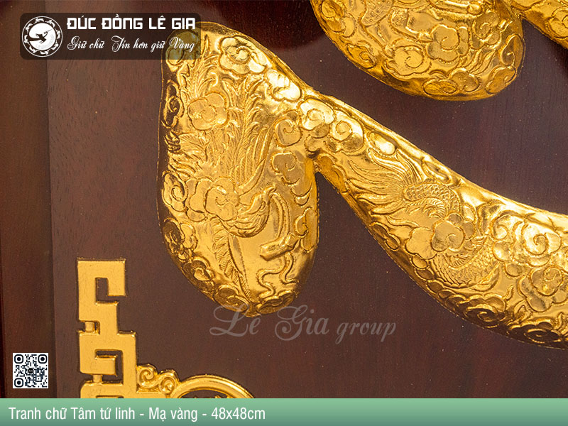 - Tên sản phẩm:Tranh chữ Tâm tứ linh bằng đồng Mạ vàng 24k