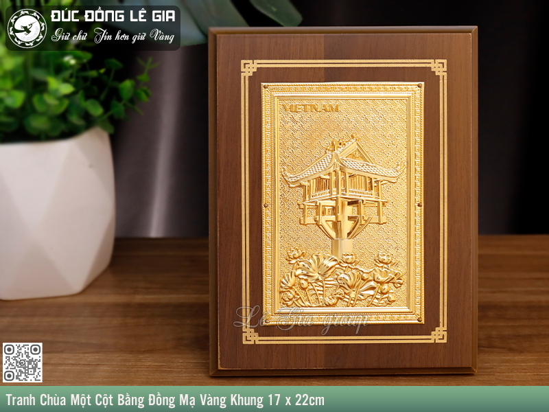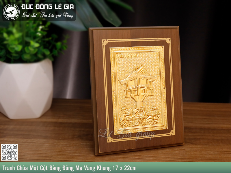 Trong tác phẩm Tranh Chùa Một Cột bằng đồng mạ vàng, hình ảnh ngôi chùa được khắc họa tinh tế với mái cong uyển chuyển, cột trụ vững chãi, bên dưới là những đóa sen nở rộ – biểu trưng cho trí tuệ, sự thanh cao và lòng nhân ái của con người Việt Nam.