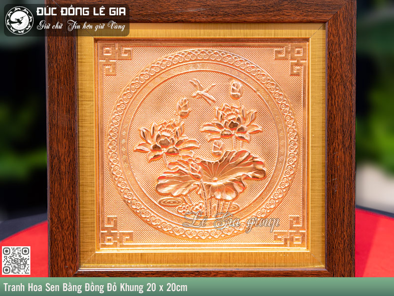 2. Mô tả Tranh Hoa Sen Bằng Đồng Đỏ Khung 20 x 20cm