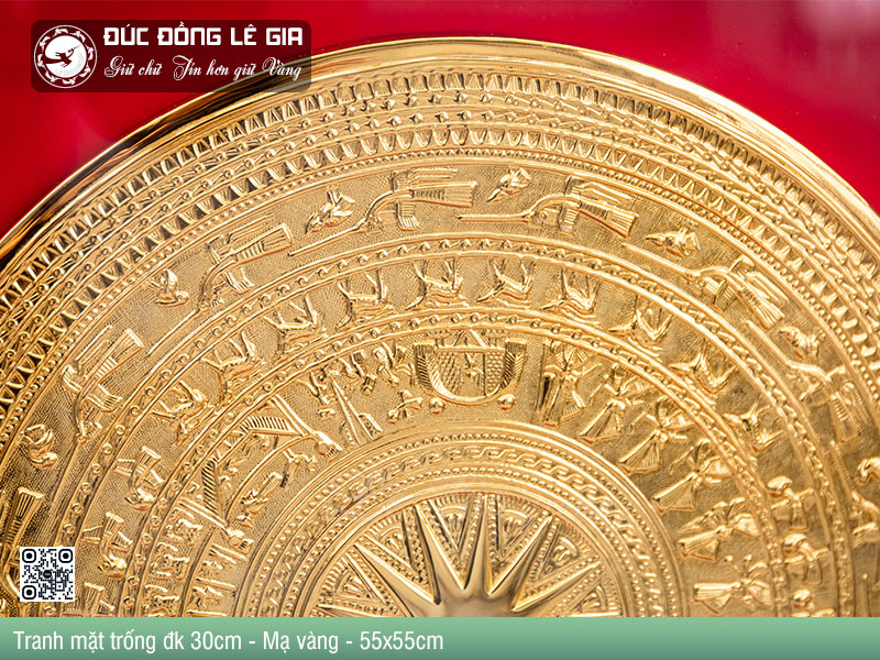 Các mẫu tranh mặt trống đồng gò là sản phẩm được tạo ra bởi các nghệ nhân Lê Gia với sự khéo léo và tâm huyết. Chúng được chế tác hoàn toàn bằng tay từ đồng vàng dày 8 rem, mạ vàng 24k bề mặt mang lại vẻ đẹp tinh tế và sang trọng cho ngôi nhà của bạn.
