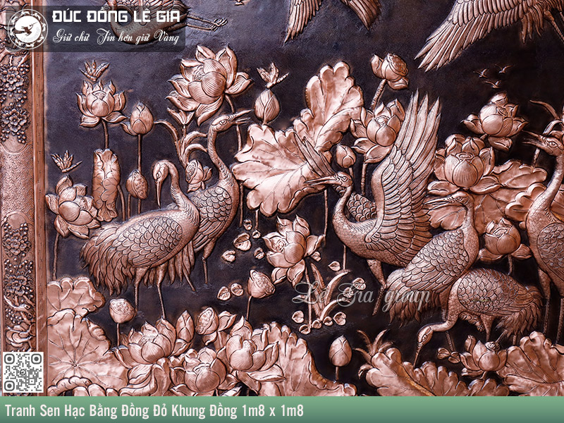 | Tên sản phẩm: | Tranh Sen Hạc Bằng Đồng Đỏ Khung Đồng 1m8 x 1m8 |