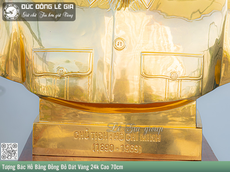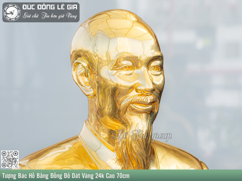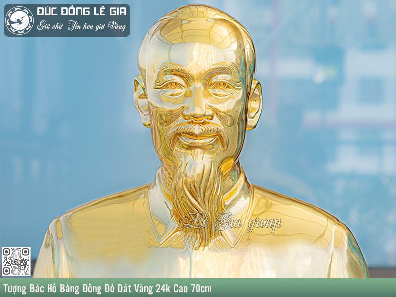 | Tên sản phẩm: | Tượng Bác Hồ Bằng Đồng Dát Vàng 24k Cao 70cm |