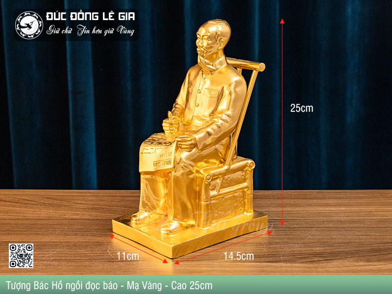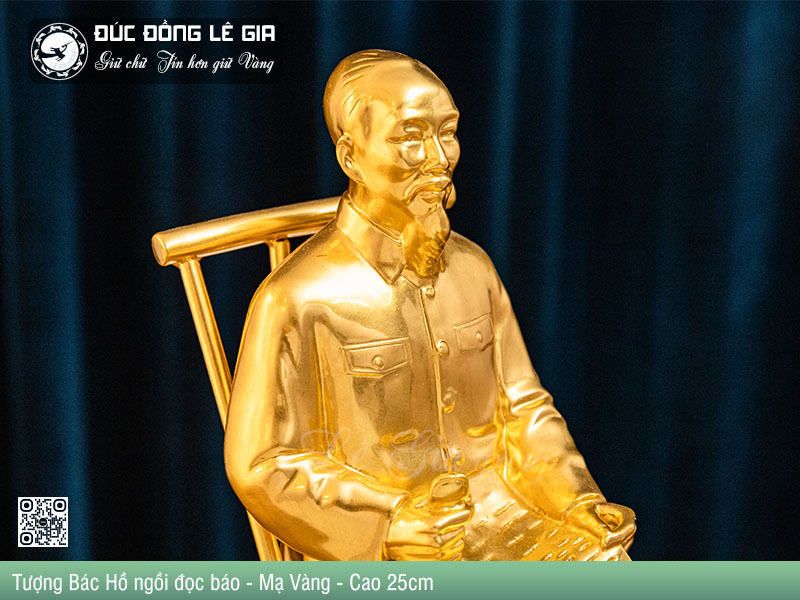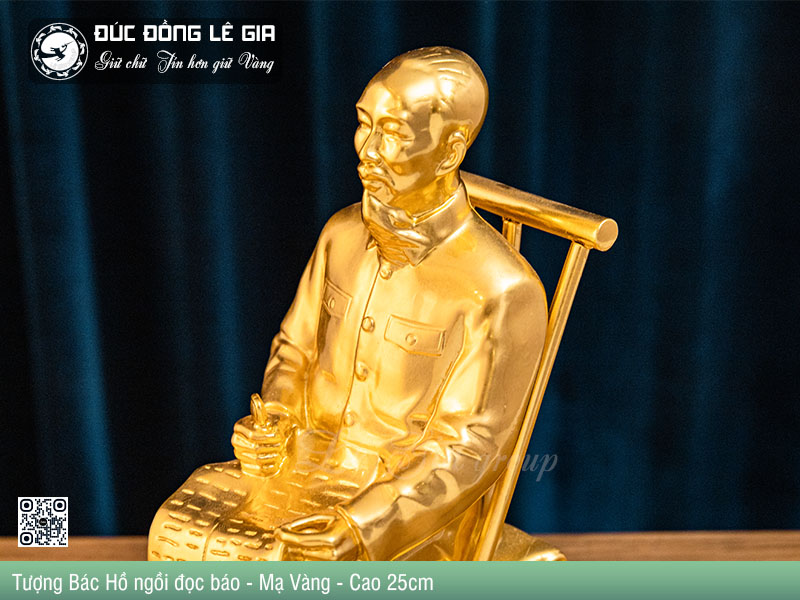 - Tên sản phẩm: Tượng Bác Hồ ngồi đọc báo - Dát Vàng 24k