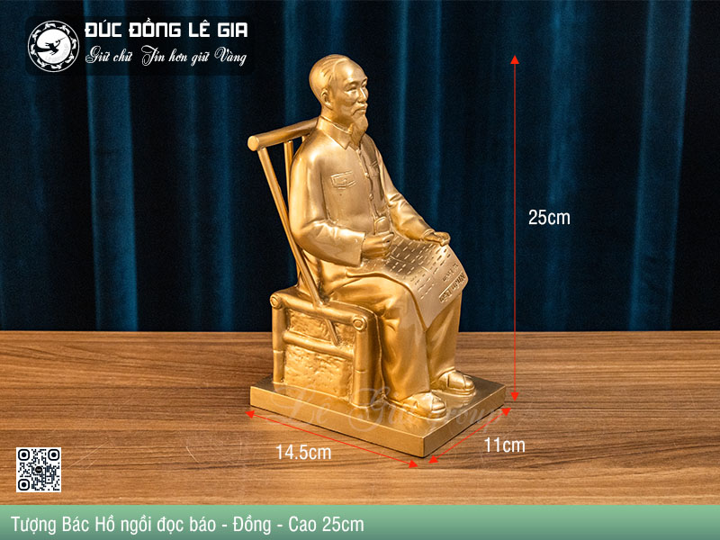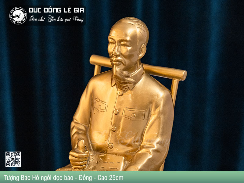 - Tên sản phẩm: Tượng Bác Hồ ngồi đọc báo - Đồng - Cao 25cm