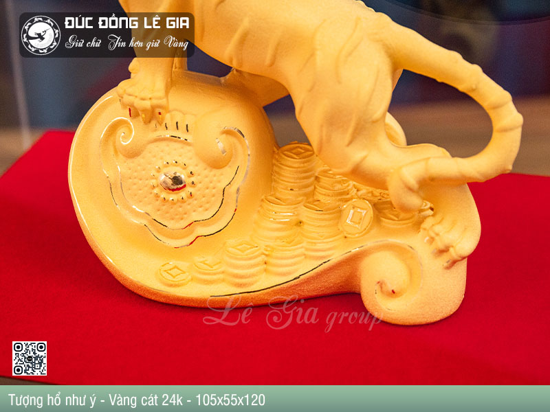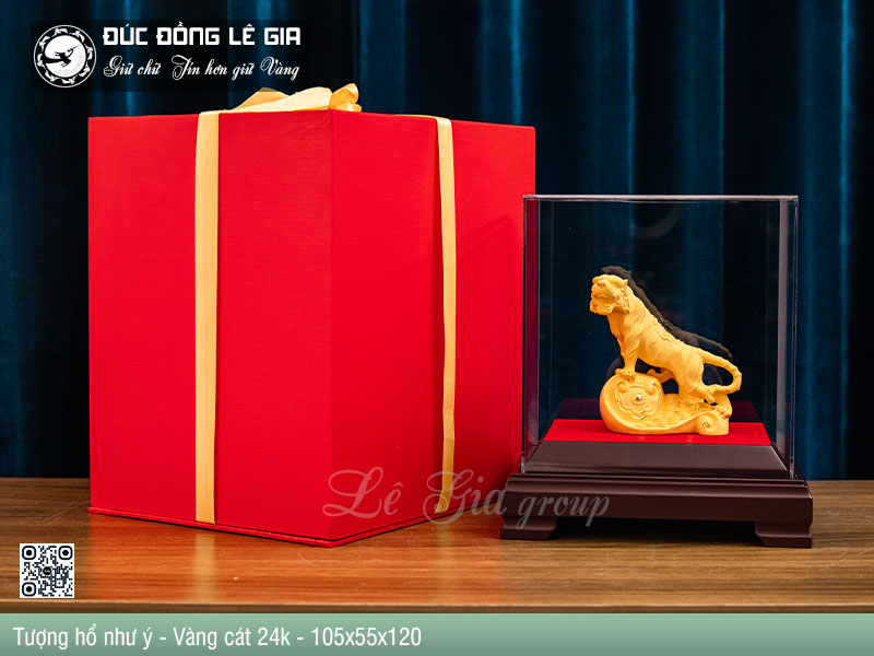 Từ nguồn cảm hứng ấy, Tượng Hổ Như Ý Vàng Cát 24K do Lê Gia Group chế tác ra đời như một tuyệt phẩm phong thủy, kết hợp tinh hoa nghệ thuật đúc đồng truyền thống với công nghệ mạ vàng cao cấp hiện đại.