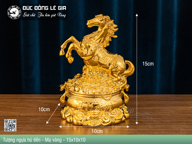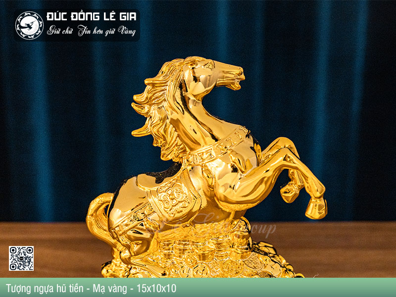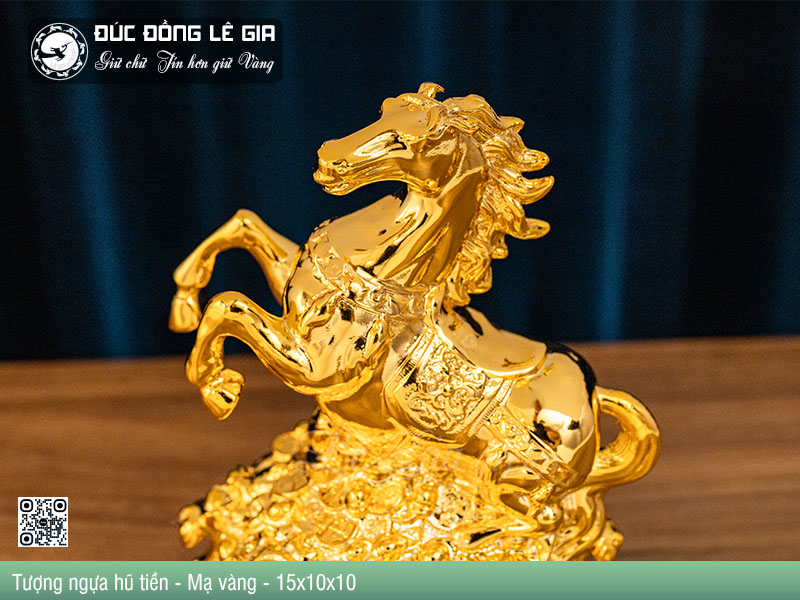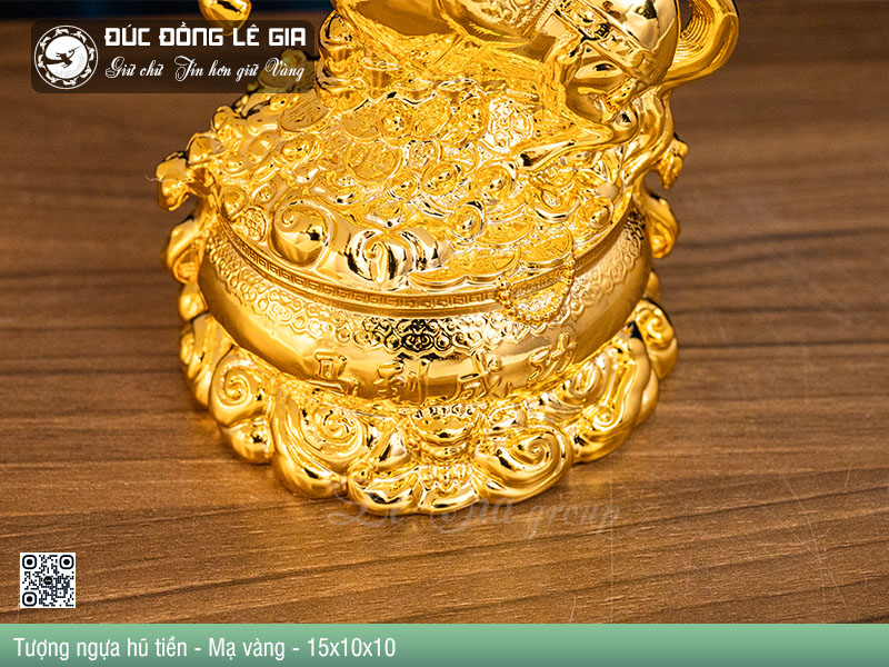- Tên sản phẩm: Tượng ngựa đứng hũ tiền - Mạ vàng 24k