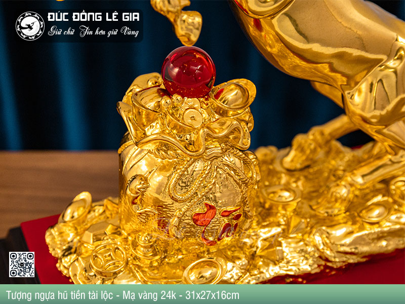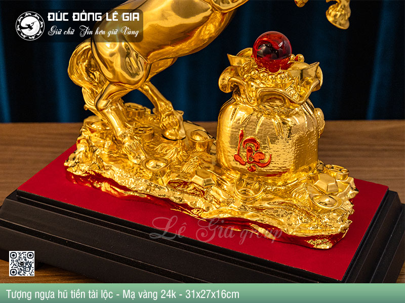 Tượng Ngựa Hí Tiến Tài Lộc mạ vàng 24K không chỉ là một vật phẩm trang trí, mà còn là biểu tượng phong thủy mạnh mẽ của sự bứt phá và thịnh vượng. Với chất liệu cao cấp, tạo hình giàu khí thế và kích thước hợp lý, đây là lựa chọn xứng đáng cho những ai đang tìm kiếm một vật phẩm vừa đẹp – vừa có giá trị tinh thần lâu dài.