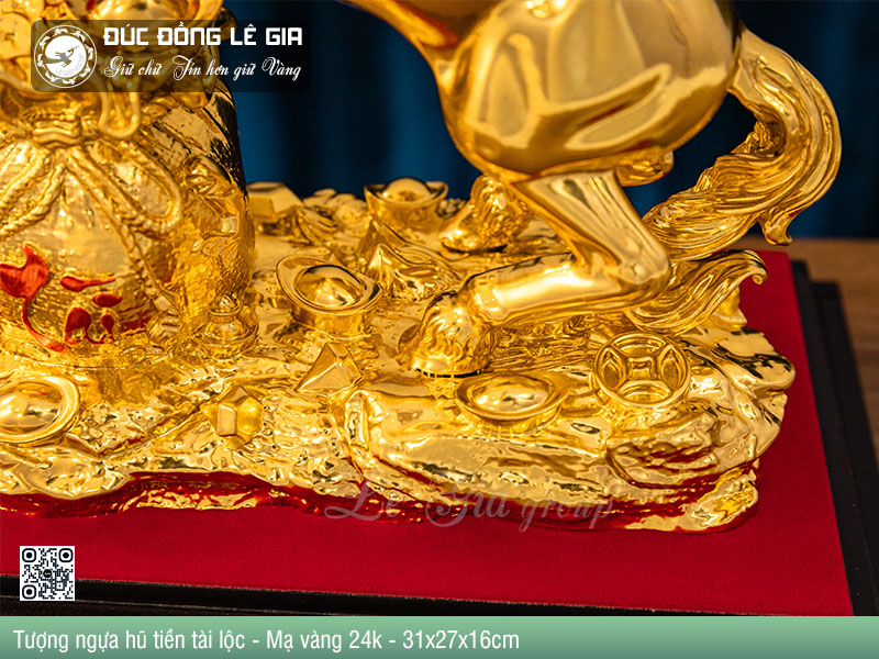 Lớp mạ vàng 24K không chỉ nâng tầm giá trị thẩm mỹ mà còn mang ý nghĩa phong thủy kích hoạt tài khí, vượng khí cho không gian trưng bày.