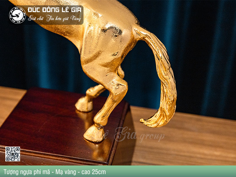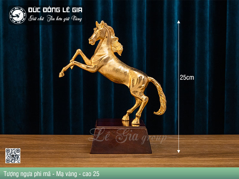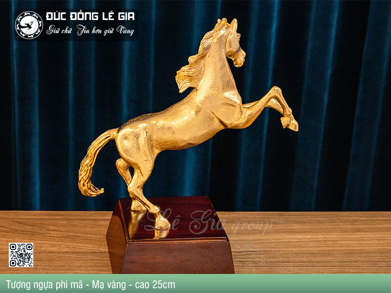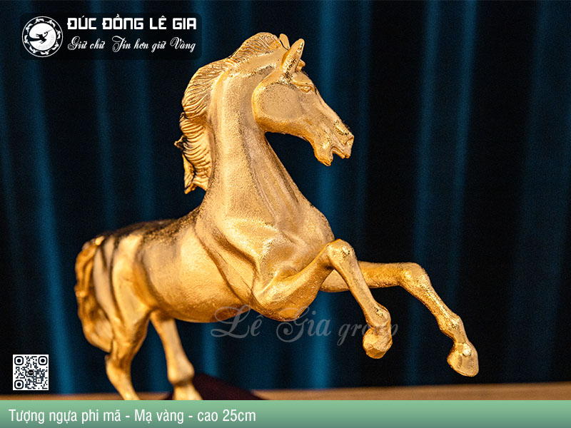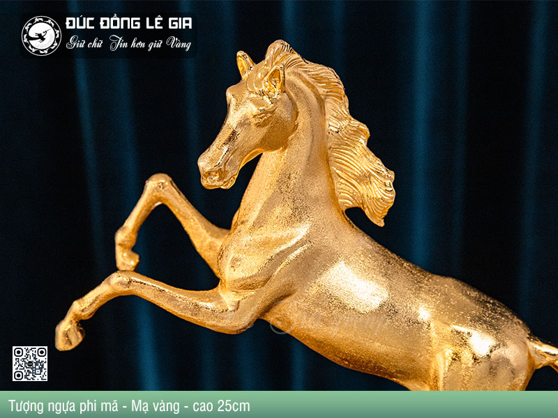 Trong phong thủy, ngựa là linh vật đại diện cho hành Hỏa, tượng trưng cho sự nhanh nhẹn, thăng tiến và tài lộc. Hình ảnh ngựa phi mã (ngựa đang chạy) mang ý nghĩa về sự bứt phá, mang tin vui chiến thắng trở về. Với kích thước cao 25cm (bao gồm cả đế), bức tượng rất phù hợp để đặt tại những vị trí trang trọng nhằm kích hoạt vận may: