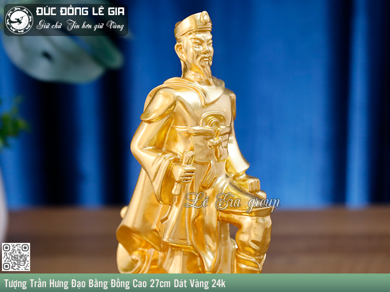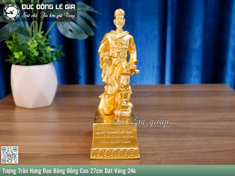 Trong không gian sống hay nơi làm việc, một pho tượng mang hình tượng anh hùng dân tộc không chỉ tôn lên vẻ sang trọng mà còn thể hiện tấm lòng hướng về cội nguồn dân tộc. Tượng Trần Hưng Đạo Bằng Đồng Dát Vàng 24k cao 27cm là một trong những mẫu tượng được nhiều người lựa chọn để trưng bày, biếu tặng với ý nghĩa sâu sắc về lòng trung quân, yêu nước và bản lĩnh kiên cường.