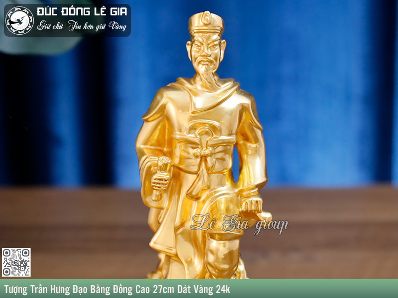 Tượng Trần Hưng Đạo Bằng Đồng Cao 27cm Dát Vàng 24k – Biểu tượng của trí dũng và lòng trung hiếu