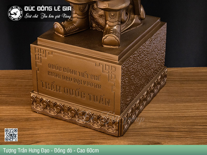 Trong không gian tĩnh lặng của phòng khách hay phòng thờ gia tiên, tượng Trần Hưng Đạo bằng đồng đỏ cao 60cm hiện lên như một biểu tượng trường tồn của lòng yêu nước và tinh thần bất khuất. Từng đường nét chạm khắc mềm mại mà dứt khoát gợi lên hình ảnh vị quốc công tiết chế uy nghi, oai phong – người đã làm nên những chiến công hiển hách, lưu danh sử sách Việt Nam.