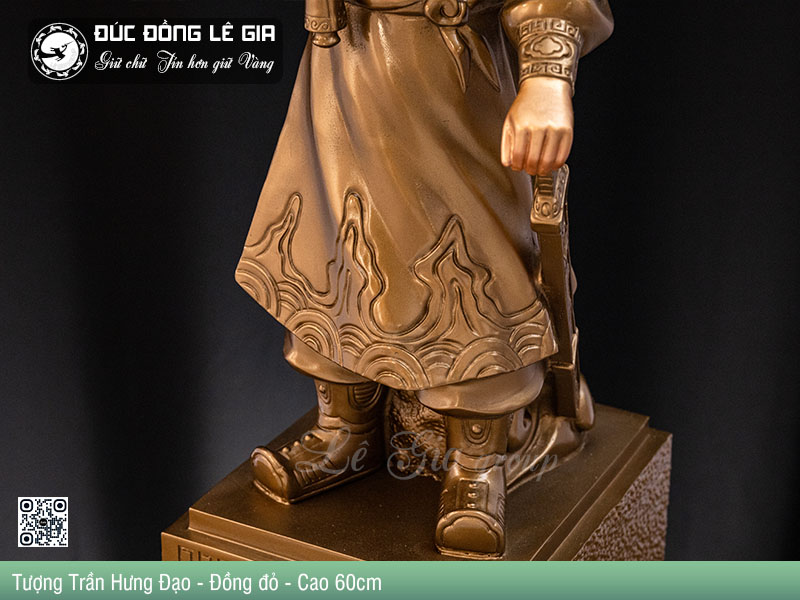 Tượng Trần Hưng Đạo là một trong những mẫu tượng được ưa chuộng nhất tại xưởng chế tác Lê Gia. Sản phẩm được đúc hoàn toàn bằng đồng đỏ nguyên chất – dòng vật liệu quý có độ bền cao, mang màu sắc trầm ấm, tượng trưng cho sức mạnh và sự trường tồn.
